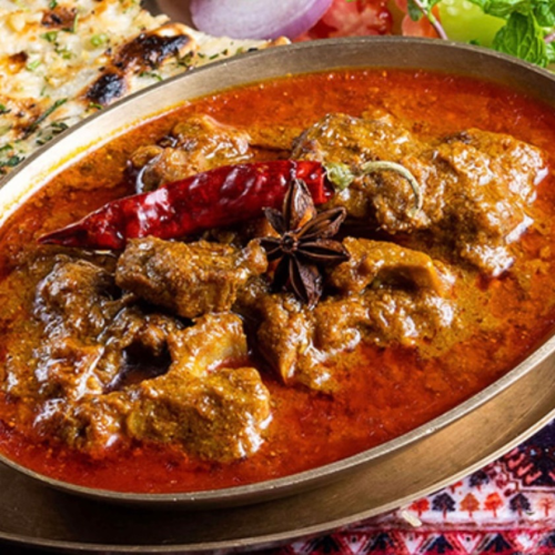 Stukjes kipfilet gestoofd in een saus van fijn gehakt, walnoten en granaatappelsiroop. De smaak is licht zoet en beetje zuur en vol van smaak, geserveerd met rijst en salade